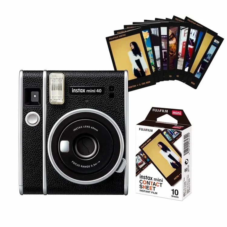 Con el Kit Fujifilm Instax Mini 40, tienes la oportunidad de tomar las mejores fotos instantáneas en tamaño mini con las características especiales de la Cámara mini 40, los colores intensos del papel Instax mini Contact Sheet resaltan, colores, paisajes, objetos en primer plano y selfies con tus amigos, descubre la magia de las luces y sombras del papel Instax mini Monochrome y mira el mundo en blanco y negro.